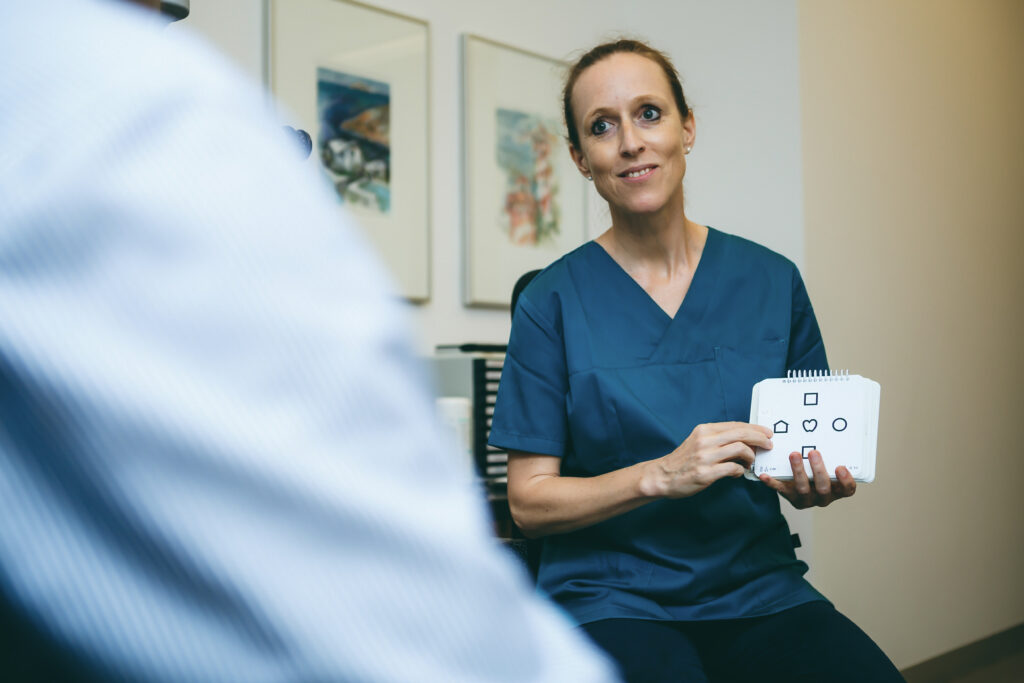 Low-Vision- Beratung (Sprechstunde für schwere Sehbehinderung. Falls erforderlich auch Hilfsmittelverordnung unter Mitwirkung eines dafür speziell geschulten Optikermeisters)